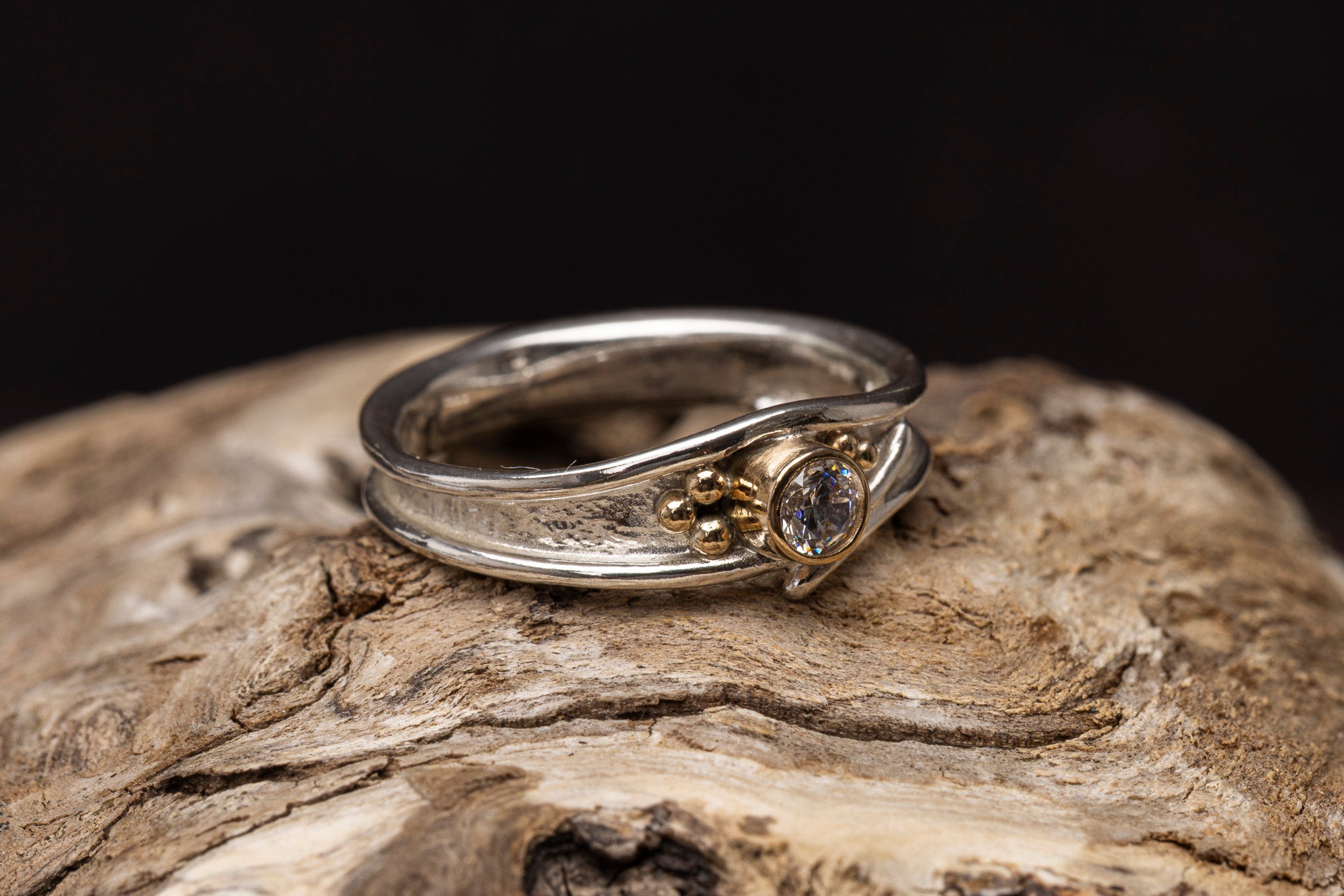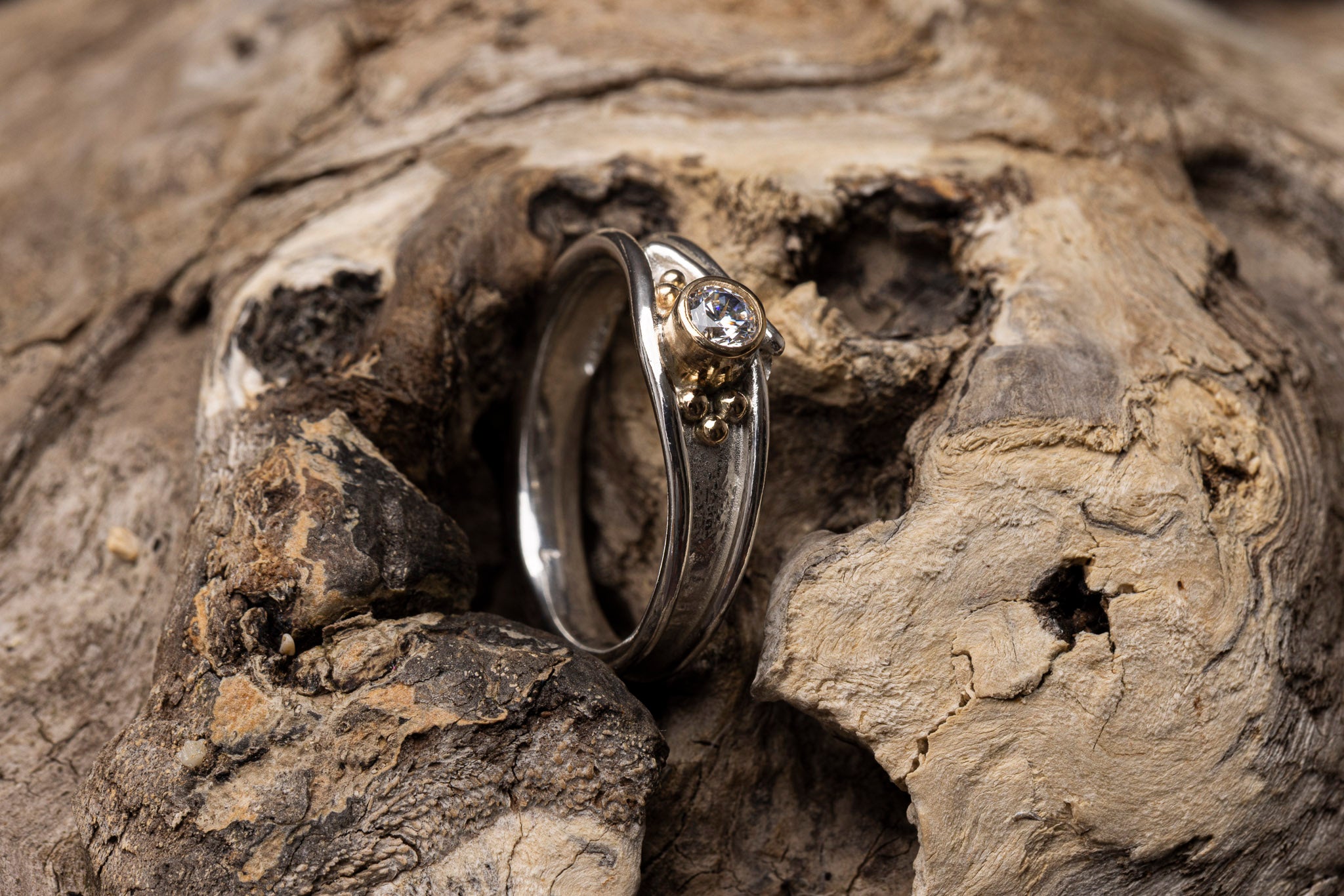 Les has refined and developed his technique of fusing metals and creating textures and designs that combine the richness of gold and silver. A combination of reticulation and fusing methods contribute to Les' modern contemporary collection of unique rings