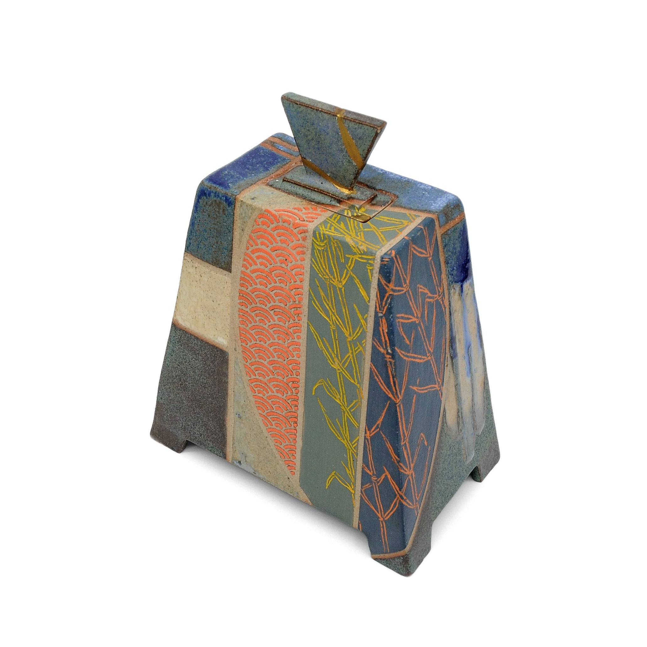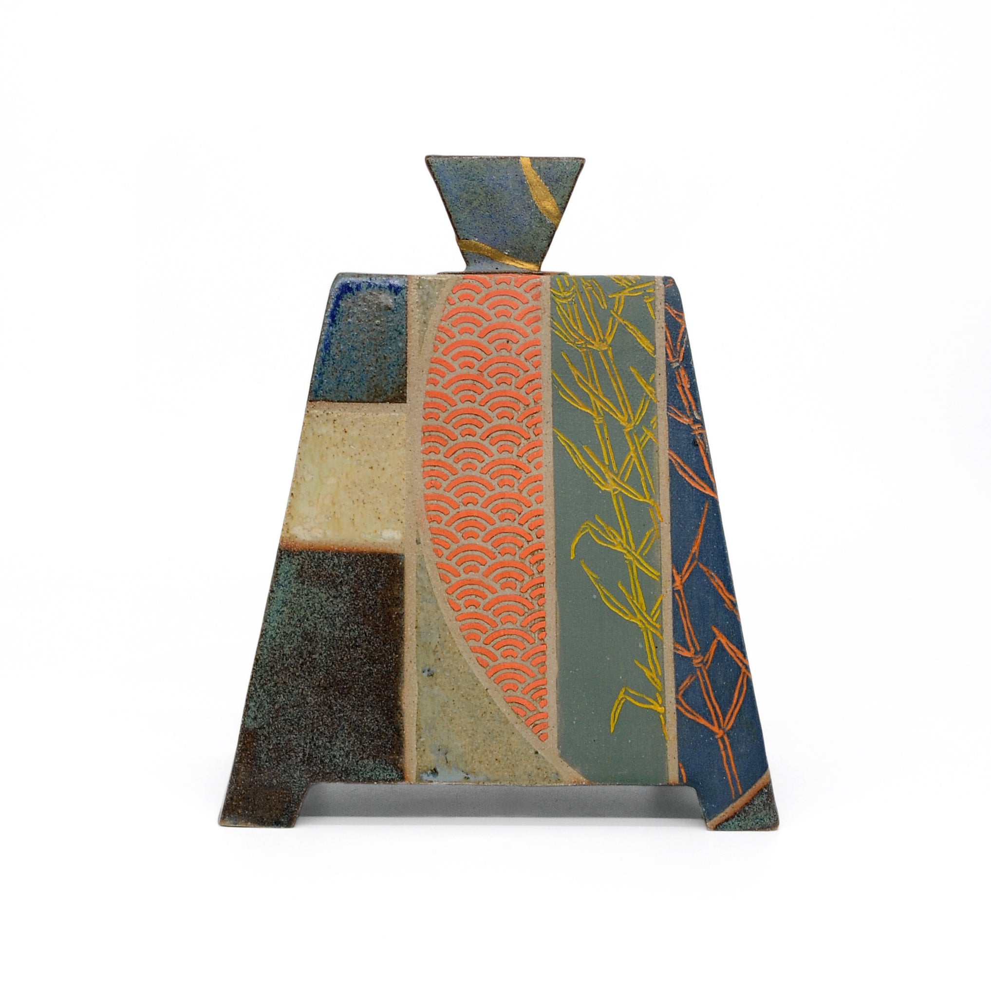 "I started making ceramic boxes as soon as I learned the slab hand-building technique. Since I was a child, I have always been charmed by anything that is shaped like a box. It didn’t matter what material it was made of. At one point, I was collecting boxes from all over the world. It was only natural that I started to make them in clay. In the beginning, I made simple square boxes with my usual puzzle cut lids. Then I raku fired them by letting the fire and smoke do their magic. Because of my current limited accessibility to raku, I started to focus on each piece with a more refined shape and decoration using multiple techniques such as inlaying or sgraffito with freehand carving and painted terra-sigillata using designed decals.