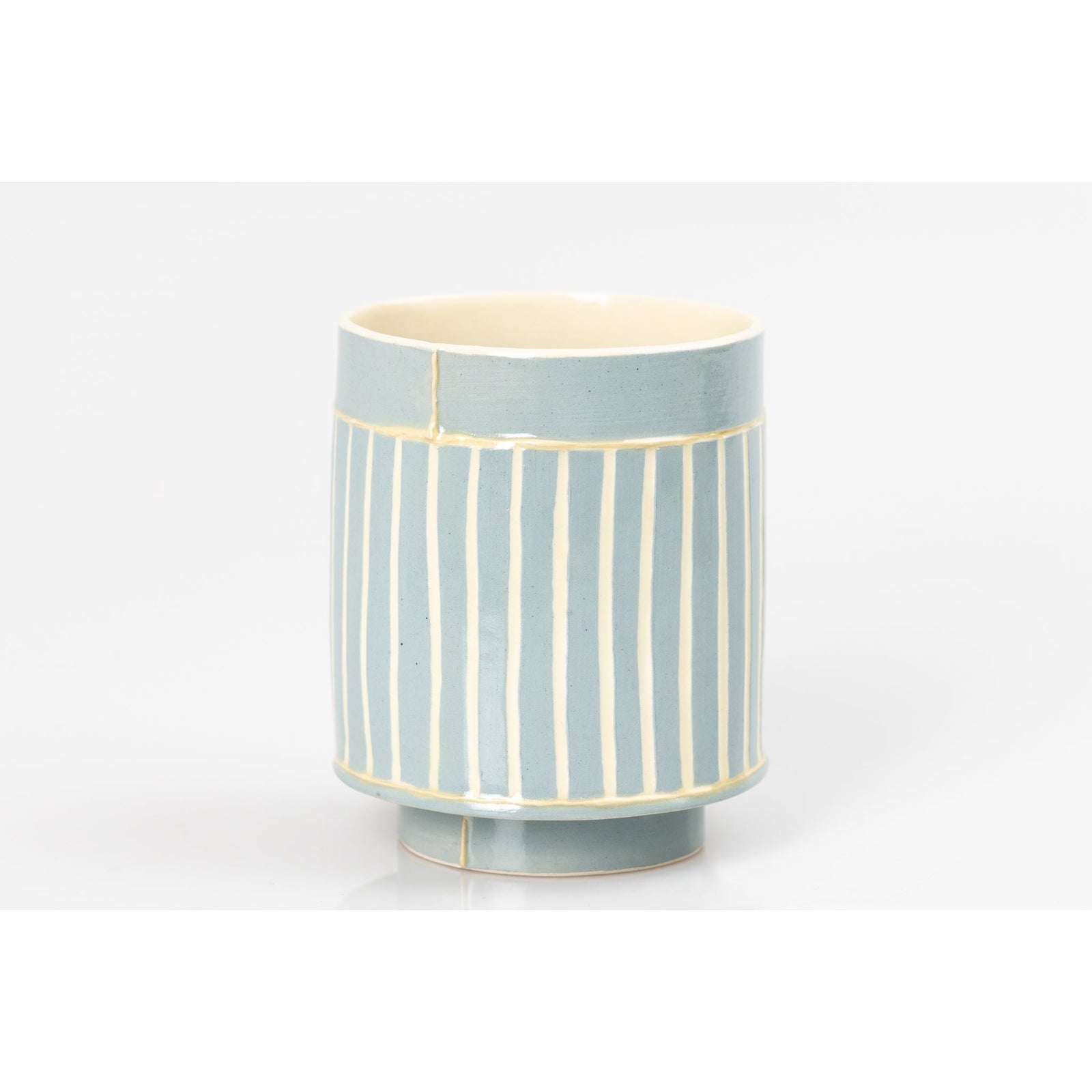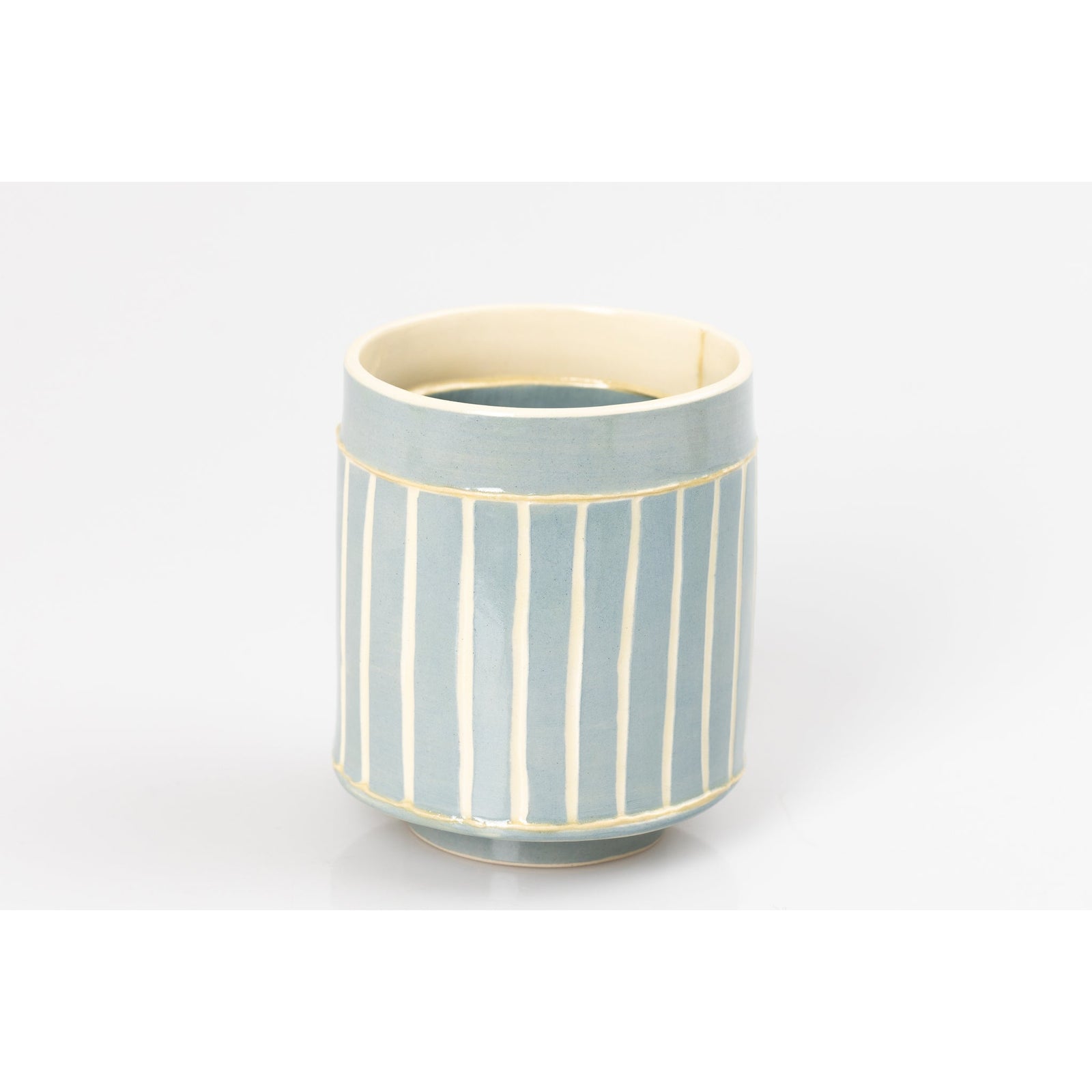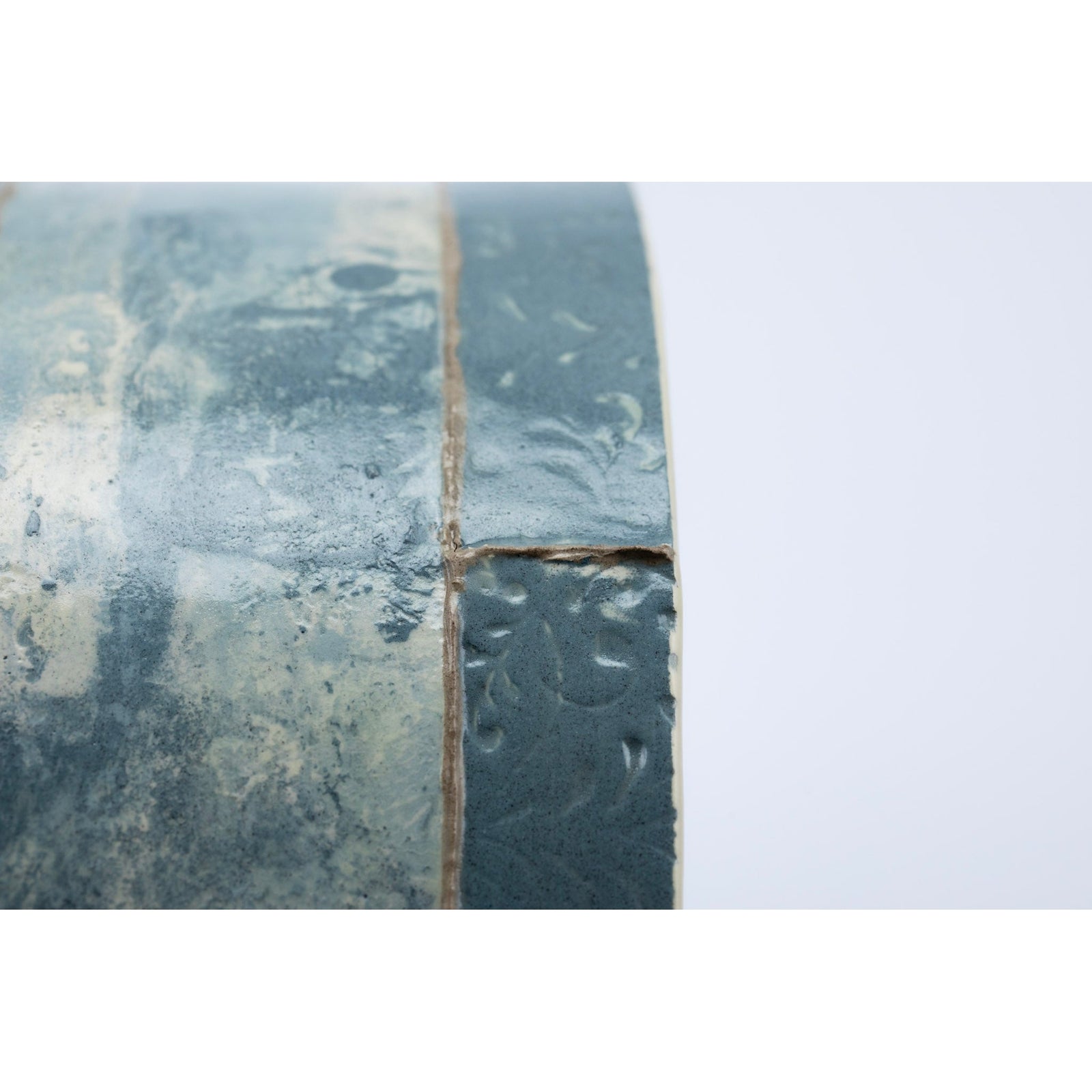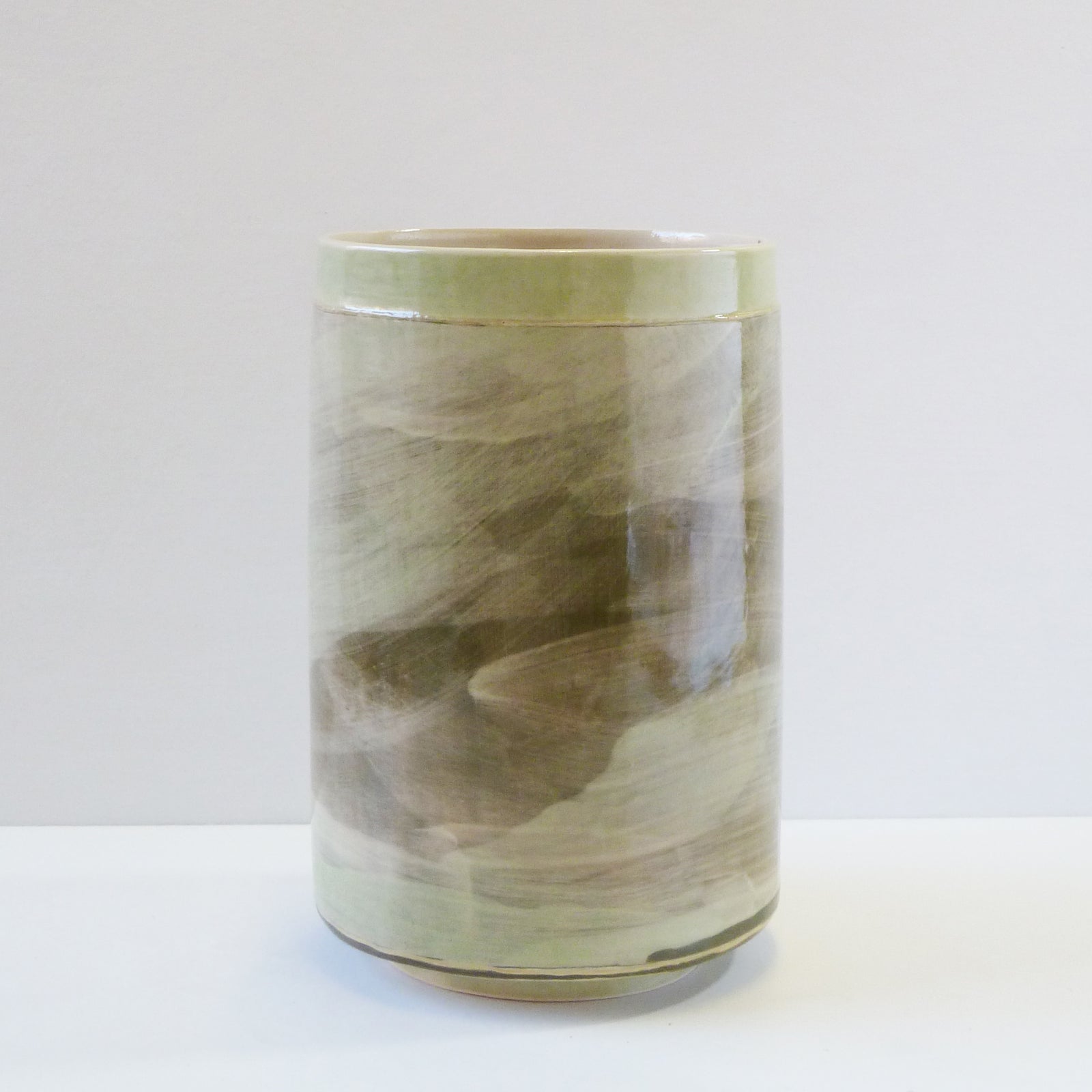 The colours and textures of the ever-changing skies, seas, coastline and accompanying landscape are a constant source influencing her explorations within the ceramic materials, where each vessel becomes its own painting and can reflect a particular moment in time. The flick of a paintbrush for